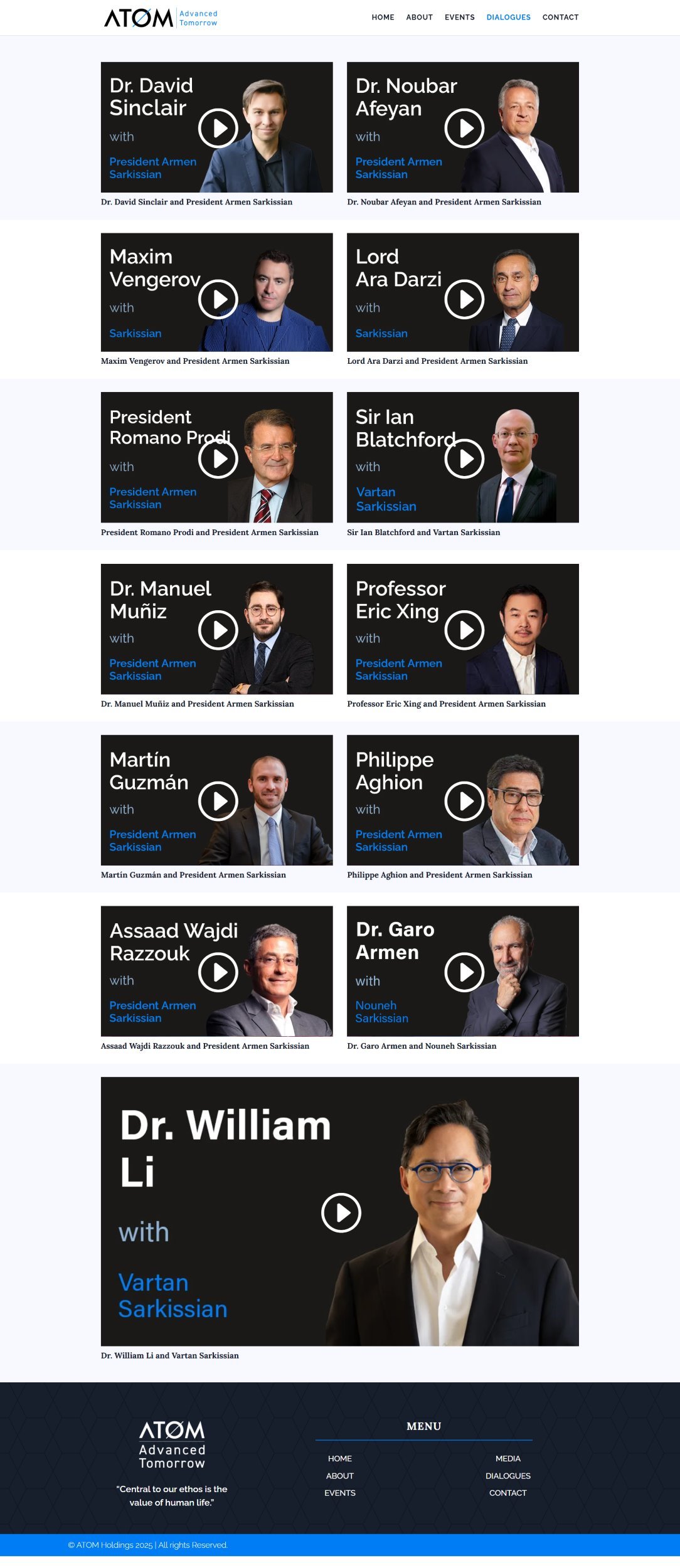 We engineered a sophisticated digital platform to match ATOM’s global ambition. Through strategic UX design, we structured complex themes of longevity and geopolitics into an accessible narrative. Our team integrated authoritative visuals and secure architecture, creating a digital hub that facilitates high-level dialogue among world leaders.