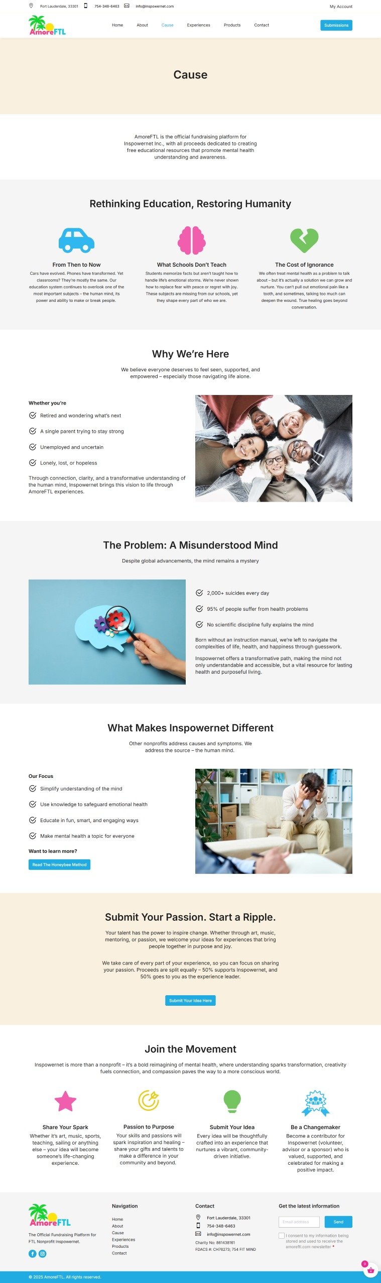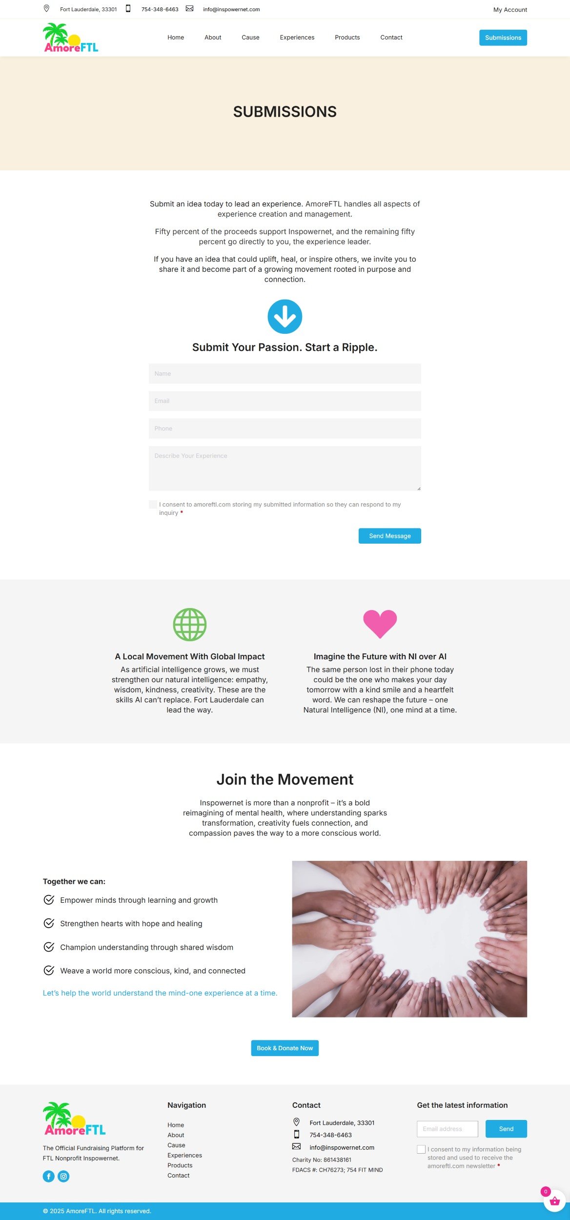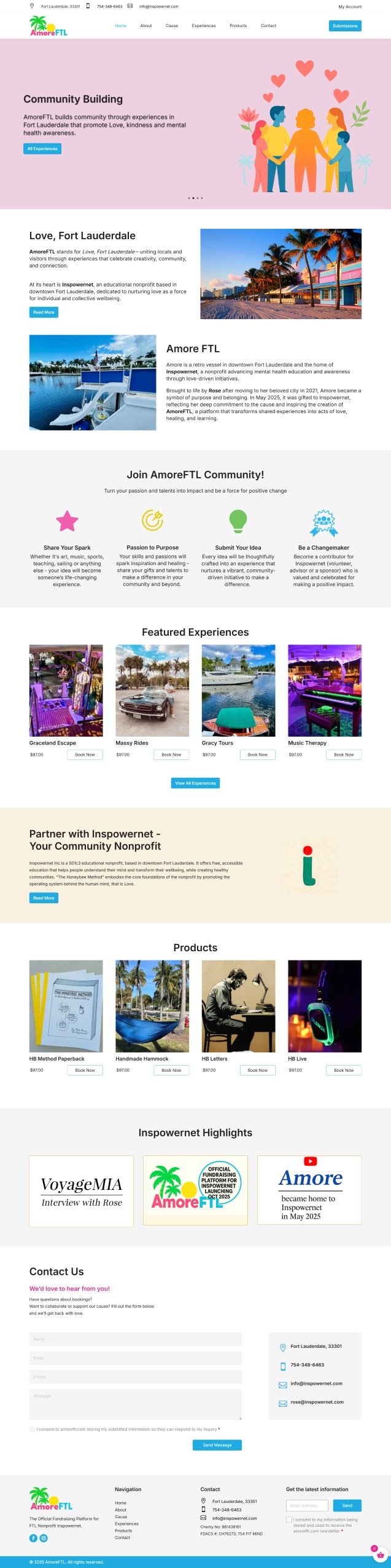 AmoreFTL (Love, Fort Lauderdale) is the official fundraising platform for Inspowernet, championing mental health and wellbeing through Love. They unite the community through creative experiences, from music therapy to boat tours, fostering connection and self-healing. Their mission is to nurture love as a force for individual and collective wellbeing.