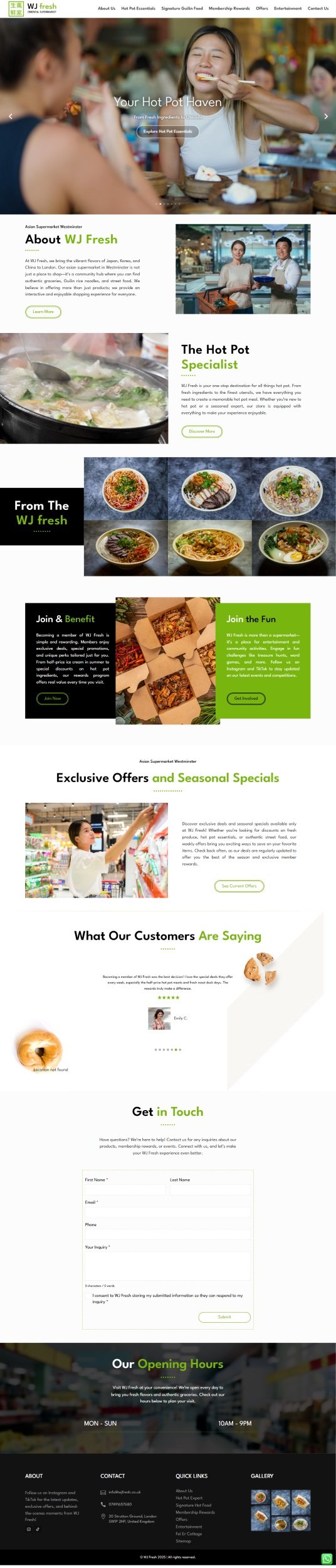We designed a dynamic, user-centric website to position WJ Fresh as London’s go-to Asian supermarket. Our strategy focused on highlighting their unique “Hot Pot” niche and community events. By integrating vivid imagery and clear product categorization, we created an engaging digital storefront that drives in-store visits and membership sign-ups.